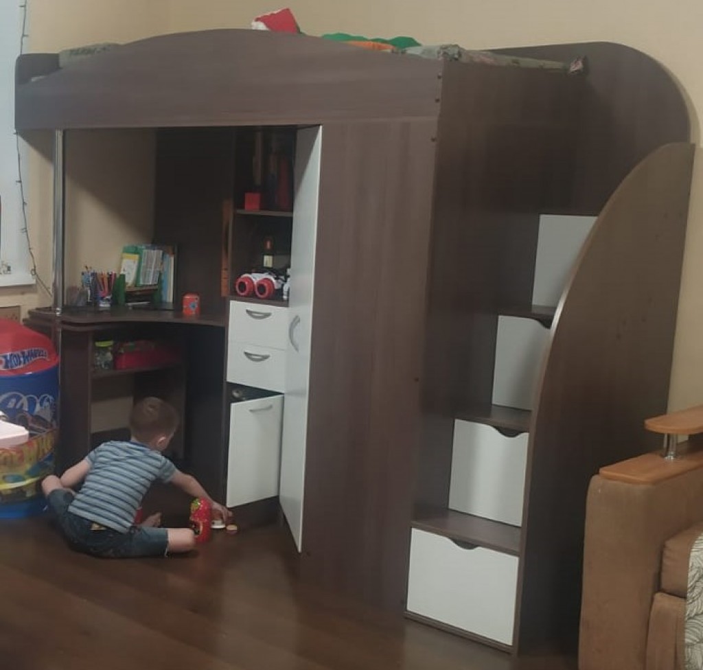Здравствуйте. Заказывала Юниор-4 2 года назад ребенку 5,5 лет (основной цвет мебели Венге, дверки светлые-дуб молочный). Все устраивает. У нас никаких сколов нет, все дверки на месте, ничего не расшаталось. Угловой шкаф для ребенка начальной школы удобный, помещаются все вещи, в том числе сезонные. Большое спасибо за мебель и сервис!