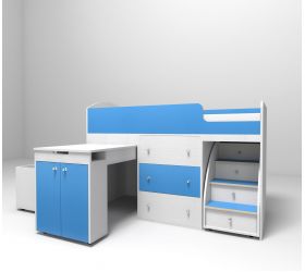 [name] => Кровать-чердак Малыш 1600 Белое дерево/Голубой
