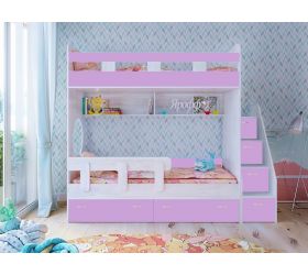 [name] => Кровать-чердак Кадет-1 с универсальной лестницей Белое дерево/Розовый