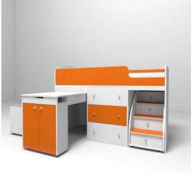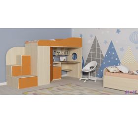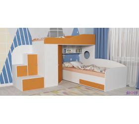 [name] => Кровать-чердак Кадет-2 угловая Белое дерево/Оранжевый